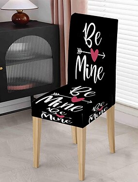 Чехол для обеденного стула ко Дню святого Валентина, эластичный, черно-белый, в клетку «буффало», с сердечком и бантом, для автомобильной спинки, моющийся, зимний, для дома, ресторана, кухни,