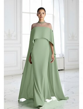 Футляр С коротким шлейфом Вечернее платье Элегантный стиль Без рукавов Вырез под горло Официальные Свадьба Стретч-креп с Воротник-шаль