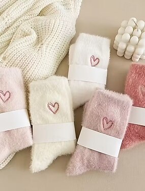 5 пар женских теплых носок из кораллового флиса – теплые толстые носки до середины икры с вышивкой в виде сердца мягкие уютные носки для дома хороший выбор для холодной погоды