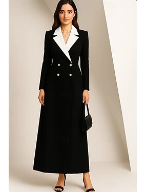 Платье-смокинг А-силуэт Ножны Официальные Свадебный гость Сатин Бархат Шерсть Элегантный стиль Длинный рукав В пол Лацкан с тупым углом Двубортный крой