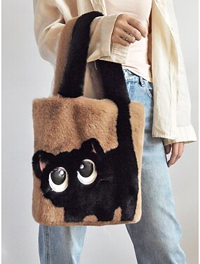 Женская плюшевая сумка-тоут с кошачьей мордочкой, доступна в нескольких цветах, мягкий меховой материал, милый и игривый дизайн для повседневных прогулок и подарков