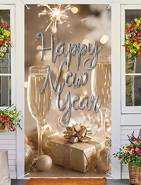 Новый год Плакаты Дверная крышка Наружные баннеры с Новым Годом 2026 г. Симпатичные Стиль 3D