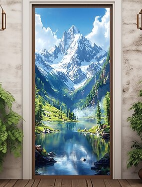 Наклейка на дверь, наружные баннеры, пейзаж, горы, 3D, живописная спальня, гостиная, входная дверь, декор для дома