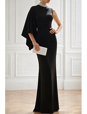 Футляр В пол Выпускные платья Вечернее платье С пышной юбкой Торжественное платье Элегантный стиль Шелковистость Без рукавов Вырез под горло Свадьба Официальные Карман Стретч-сатин с Плиссировка