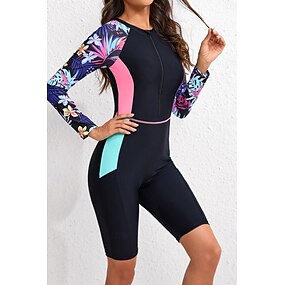 Жен. Стандартный Рашгард Рашгард на все тело Цельный костюм для серфинга Цветочные тропический Блокировка цвета Застегнуться со встроенным бюстгальтером Передняя молния