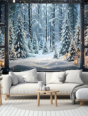 Новогодняя тематика Плакаты Одеяло Гобелены Зимняя страна чудес Уютный Вечеринка Гостиная Общежитие Фоны для съемки Ярд (0,9 м) Подарок Домашний декор