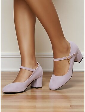 Женские туфли Мэри Джейн из сиреневой замши на блочном каблуке – туфли в винтажном стиле 1950-х годов с круглым носком и ремешком на щиколотке для свадеб, вечеринок и нарядов в стиле ретро.