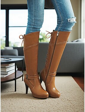 Женские сапоги на высоком каблуке до колена со шнуровкой сзади — шикарные, стильные и идеально подходят для повседневных и нарядных случаев