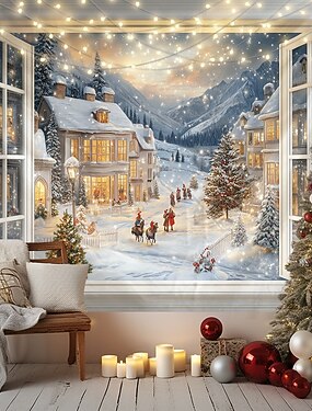 рождественские украшения подвесной гобелен вид из окна настенное искусство рождественский большой гобелен фреска декор фотография фон одеяло занавеска дом спальня гостиная украшение
