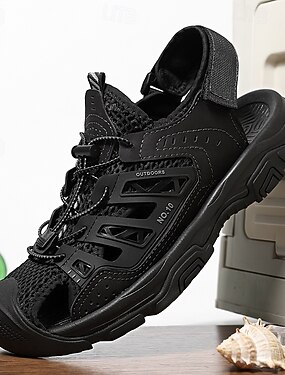 Мужские черные спортивные сандалии – быстросохнущие, регулируемые и удобные, идеально подходят для походов, пляжа и летних приключений.
