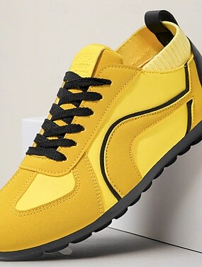 Мужские желто-черные повседневные кроссовки с дышащей сетчатой конструкцией, легкие нескользящие кроссовки для прогулок на свежем воздухе, путешествий и повседневного стиля