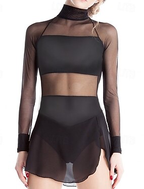 Платье для фигурного катания Жен. Девочки Катание на коньках Платья Черный Белый Пэчворк Отверстие для большого пальца Сетка Спандекс Эластичная Учебный Тренировочные Профессиональный стиль