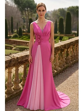А-силуэт В пол Вечернее платье Торжественное платье Элегантный стиль Пастель Повседневная / Дневная свадьба Без рукавов V-образный вырез Свадьба Официальные Сатин с 3D Цветы