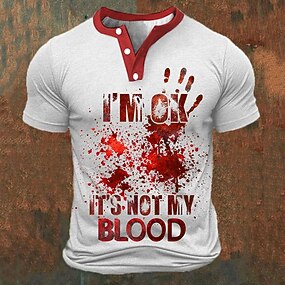 Муж. Буквы Графические принты руки Винтажная рубашка Рубашка Хенли Графический Тис С короткими рукавами Футболка 3D печать Хенли Рубашка Мода Классический На каждый день