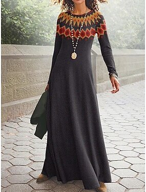 Жен. Длинное платье Платье-футляр Платье-футболка Отпуск На каждый день Богемный Праздники Свидание Стандартный Графика Геометрический принт Абстракция Длинный рукав