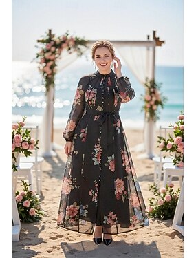 Из двух частей А-силуэт До щиколотки Свадебное платье для гостей свадебные платья для гостей Элегантный стиль Повседневные Длинный рукав Вырез под горло Вечеринка в саду Официальные с