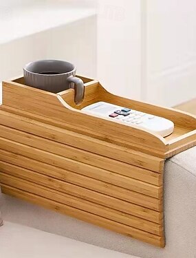 стильный бамбуковый поднос на подлокотник дивана с подстаканником - конструкция, препятствующая падению, складной столик для хранения закусок, телефонов, напитков &чашки, современный аксессуар для