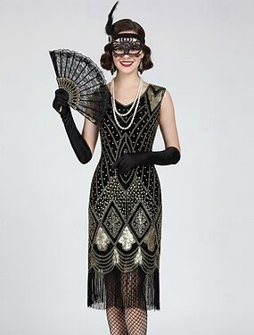 Платье в стиле гэтсби 1920-х годов с набором аксессуаров 20-х годов, женский костюм с бахромой и блестками, ретро-винтажный костюм для косплея, вечернее коктейльное платье