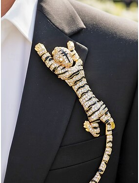 Мужская брошь в виде тигра из сплава, варианты цвета: золотой и серебряный, украшена кристаллами, стильный аксессуар для свадеб и званых ужинов.