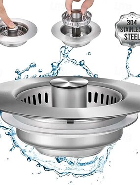 Фильтр для слива кухонной мойки из нержавеющей стали 3-в-1 с корзиной для сбора пищевых отходов, предотвращающей засорение &Фильтр для удаления запахов с пружинным выдвижным стопором, стандартная