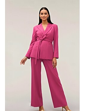 Жен. Костюмы-2 Из двух частей Офис Свадебный гость Полистер Элегантный стиль минималист Длинный рукав Прямоугольный Сторона узла