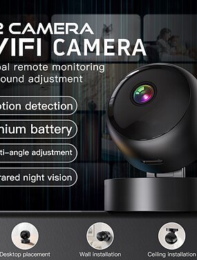 Wi-Fi камера видеонаблюдения с разрешением HD 1080p, инфракрасным ночным видением, функцией обнаружения движения и звука, а также панорамным обзором на 360 градусов.