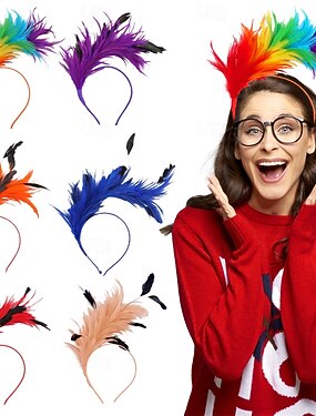 повязка на голову из перьев для карнавала &вечеринка – цветной аксессуар для волос в виде перьев, радуга &однотонные цвета, идеально подходят для Марди Гра, фестиваля &костюм