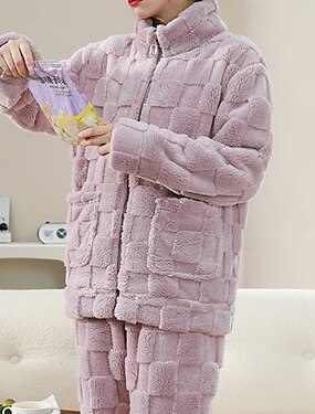 Жен. Пижамы Домашняя одежда На каждый день Чистый цвет Карман Эластичная талия Брюки Отпуск Дом Повседневные Длинный рукав Воротник-стойка Светло-розовый белый порошок Лотос розовый Белый Лиловый