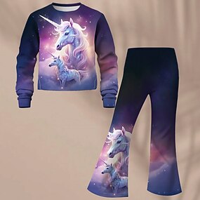 Девушки ' 3D Графика Лошадь Платье Длинный рукав Лето Весна Отпуск Повседневные Праздники Красивый Милая Дети 4-12 лет Повседневное платье Платье A-силуэта До колена Стандартный