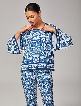 Атласная блузка-пончо с V-образным вырезом и геометрическим принтом