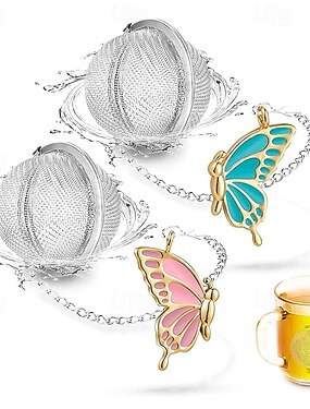 2 чайных шарика для заваривания рассыпного чая с подвеской в виде бабочки, сеточка из нержавеющей стали, ситечко для заваривания чая, с 3D-подвеской, диффузоры для чая для девочек и женщин
