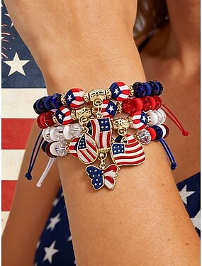Набор женских браслетов из разных материалов, различные стили, подвески с патриотическим флагом США, регулируемые ремешки, идеально подходит для празднования 250-летия США, Дня независимости и повседневной носки.