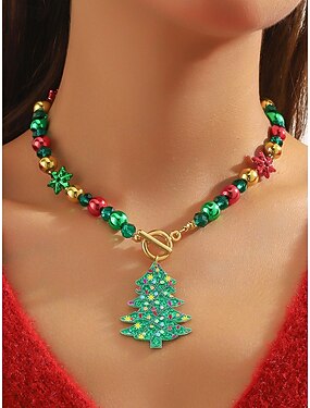 Женское рождественское подарочное ожерелье из сплава и акрила, разноцветные бусины с праздничными подвесками, идеальный праздничный аксессуар для вечеринок и встреч