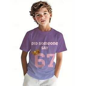 Мальчики 3D Графика Забавный сленг 67 Футболка С короткими рукавами 3D печать Лето Весна Спорт Мода Уличный стиль Дети 4-12 лет Вырез под горло Повседневные на открытом воздухе Стандартный