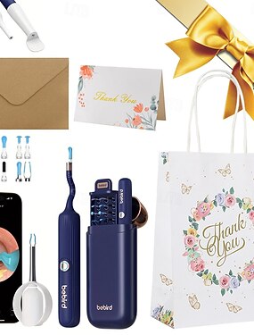 Подарочный пакет с поздравительной открыткой Bebird Earsight Plus E33R с гибким инструментом для удаления ушной серы и камерой. Набор для чистки ушей.