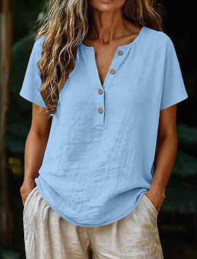 Жен. Рубашка Рубашка из хлопка и льна Искусственный хлопок и лен Элегантный стиль Отпуск Винтаж Без рукавов V-образный вырез Обычные топы Повседневные на открытом воздухе Офис