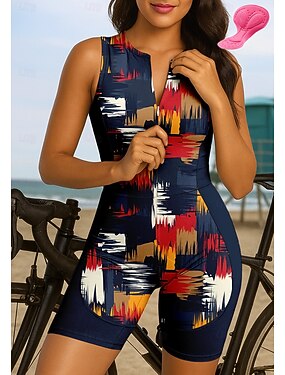 Жен. Костюм для триатлона Комплект велосипедного джерси Без рукавов Горные велосипеды Шоссейные велосипеды Лето Синий Черный Геометрический принт Велоспорт 3D