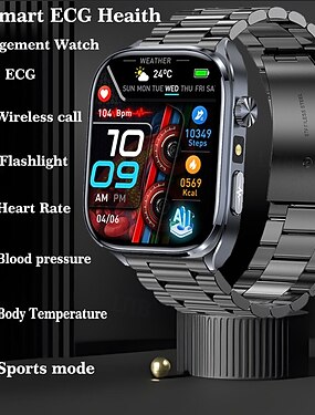 iMosi ET572 Умные часы 2 дюймовый Смарт Часы Bluetooth ЭКГ + PPG Контроль температуры Педометр Совместим с Android iOS Женский Мужчины Длительное время ожидания Хендс-фри звонки Водонепроницаемый IP68