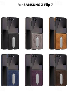 телефон Кейс для Назначение SSamsung Galaxy Z-флип 7 Z Flip 7 FE Z-флип 6 Z Flip 5 Z Flip 4 Кейс на заднюю панель Поддержка беспроводной зарядки Откидная подножка Защита от удара Ретро ТПУ Кожа PU