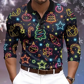Новогодняя тематика Муж. Звезда Новогодняя ёлка Рубашки поло Рубашки-поло для гольфа Длинный рукав Футболки поло Воротничок На каждый день Отпуск Вечерние наряды На каждый день фестиваль 3D