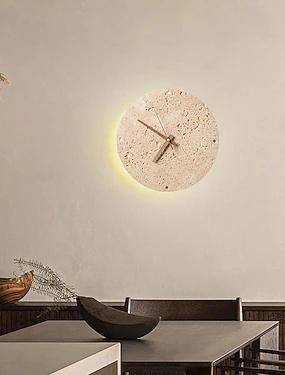 Настенный светильник в форме часового механизма со светодиодами, современный круглый светильник из желтого травертина, настенный светильник из натурального камня ваби-саби с часовой стрелкой для