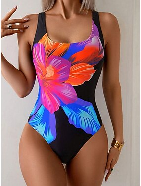 Жен. Купальники Один кусочек Монокини Брифы купальник Утягивание живота Завышенная Тонкие Открытая спина Элегантный стиль Отпуск Цветочный принт Графика U-образный вырез Без рукавов Купальники
