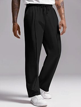 Муж. Штаны Спортивные штаны прямого кроя Брюки со складками Кулиска Карман Эластичная талия Полотняное плетение Комфорт Для спорта и активного отдыха Повседневные Мода На каждый день Черный