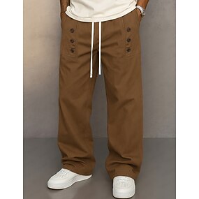 Муж. Льняные брюки Летние штаны Кулиска Эластичная талия Прямая нога Полотняное плетение Комфорт Дышащий Полная длина Повседневные Пляж Праздники Отпуск Мода Синий Черный Неэластичная