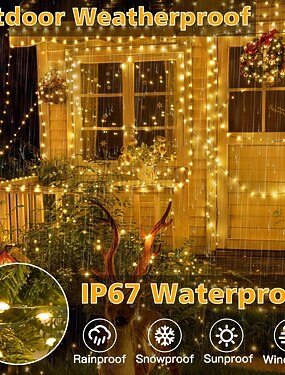 Рождественский светильник-занавес 10 * 10 футов, 300 светодиодов, 8 функций, дистанционное управление, подвесные гирлянды на солнечных батареях, водонепроницаемые, для внутреннего и наружного