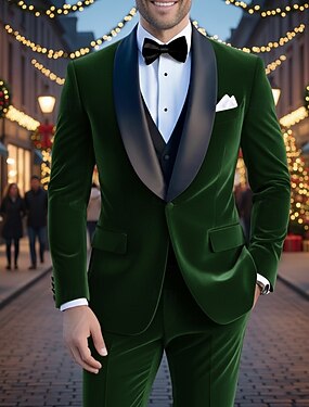 Мужские рождественские повседневные бархатные костюмы с шалевыми лацканами, красные, зеленые, для рождественской вечеринки, однотонные, приталенные, из двух частей, однобортные, на одной пуговице