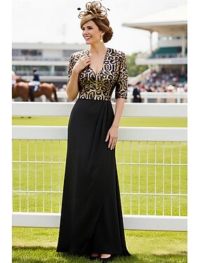 А-силуэт Платья В пол Коктейльные платья Платье для матери невесты С короткими рукавами V-образный вырез Лацкан Элегантный стиль Винтаж Простой Официальные Свадебный гость Дерби в Кентукки