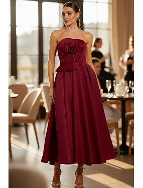 А-силуэт До щиколотки Свадебное платье для гостей Вечернее платье Выпускные платья Элегантный стиль Без рукавов Без бретелей Выпускной Официальные Сатин с Вышитый цветок