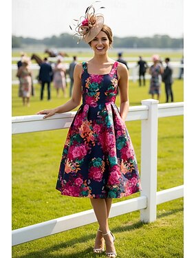 А-силуэт До колена Коктейльные платья Свадебное платье для гостей Платье Дерби Платье для матери невесты Без рукавов На тонких бретелях Элегантный стиль минималист