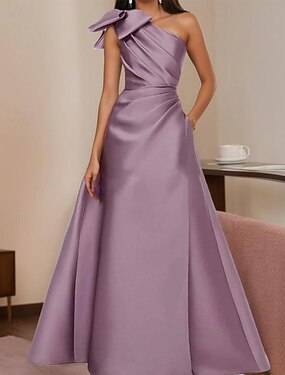 А-силуэт В пол Вечернее платье С пышной юбкой Торжественное платье Элегантный стиль Для вечеринки Без рукавов На одно плечо Официальные Для вечеринок Сатин с Бант(ы) Плиссировка